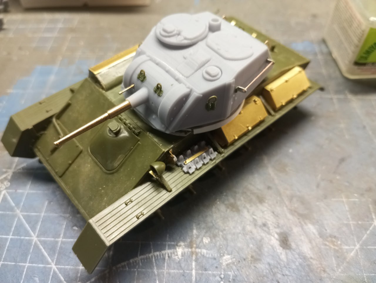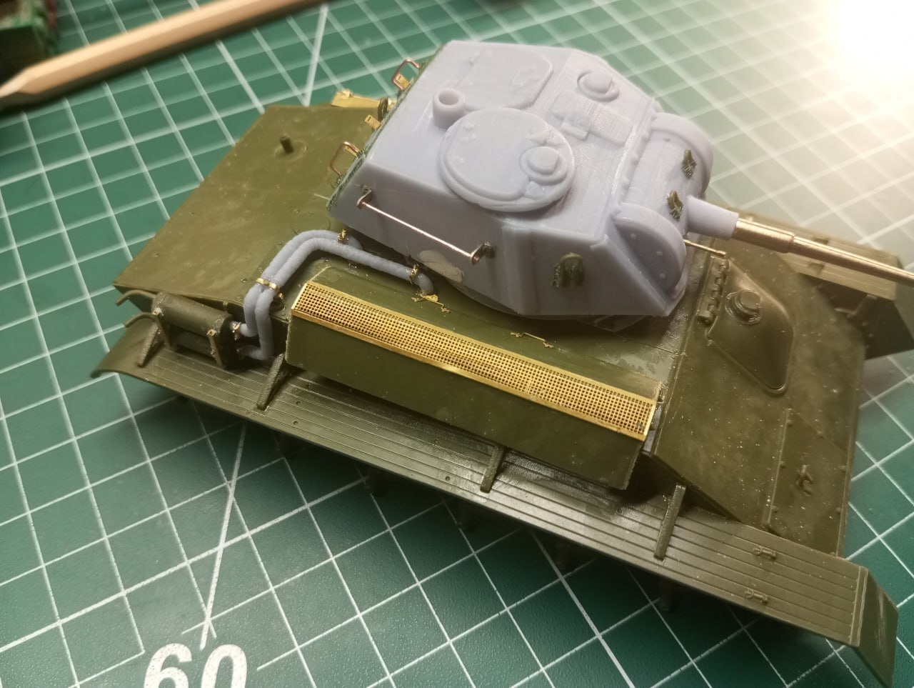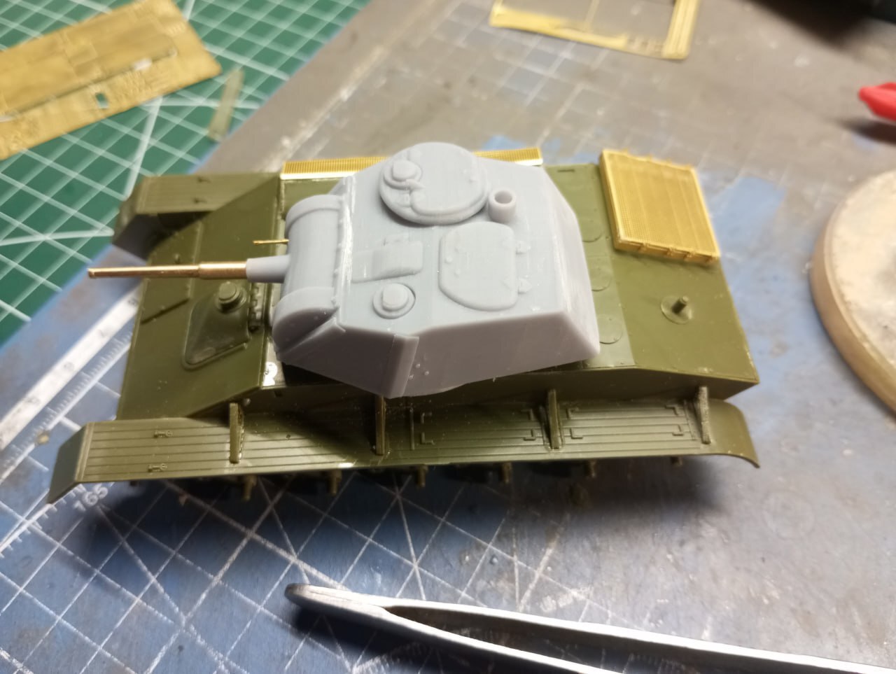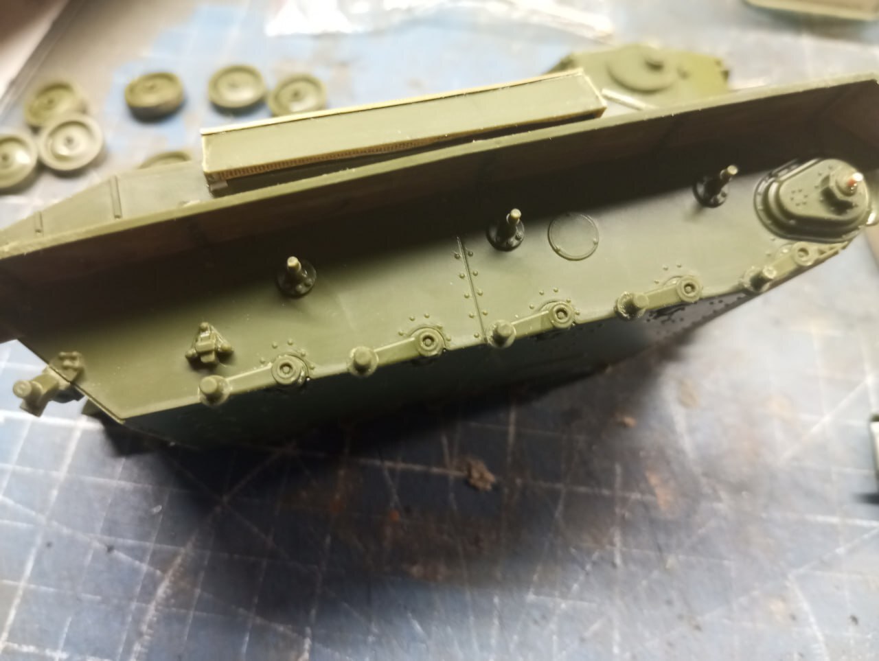 Вот здесь башенный погон уже практически завершен. Видно, что со стороны правого борта пластиковое кольцо срезано по линии шва, пролегающего по крыше корпуса.