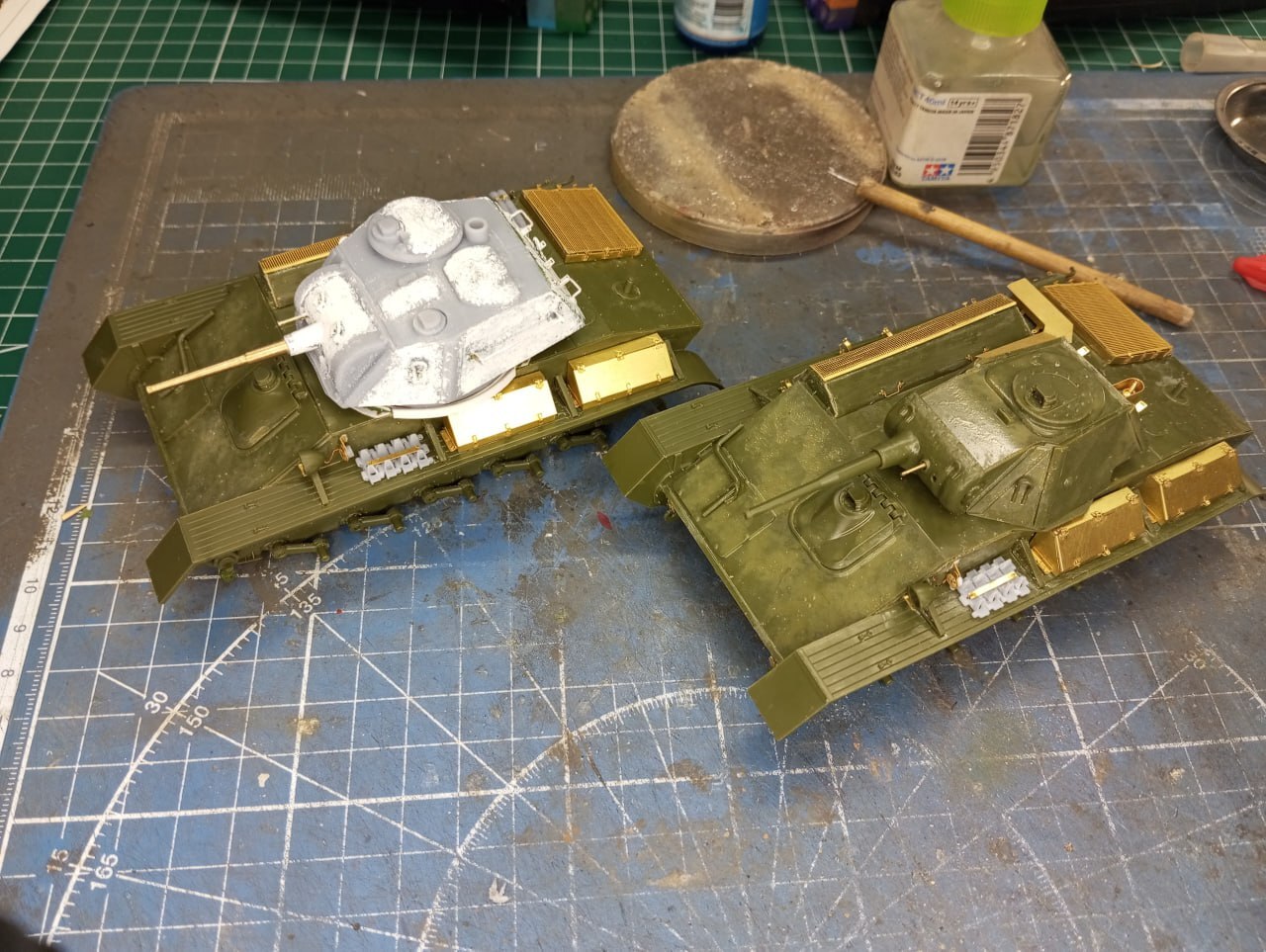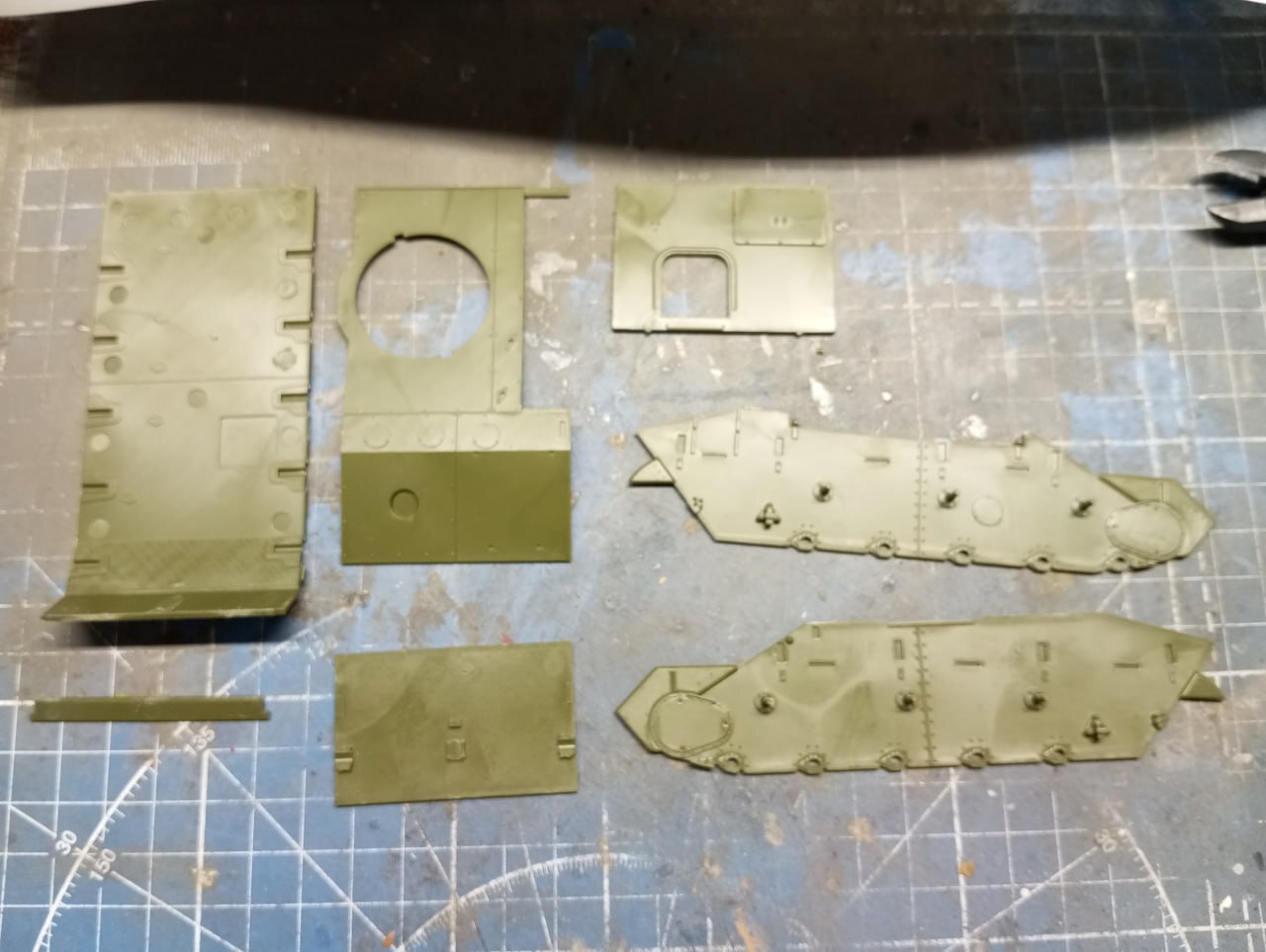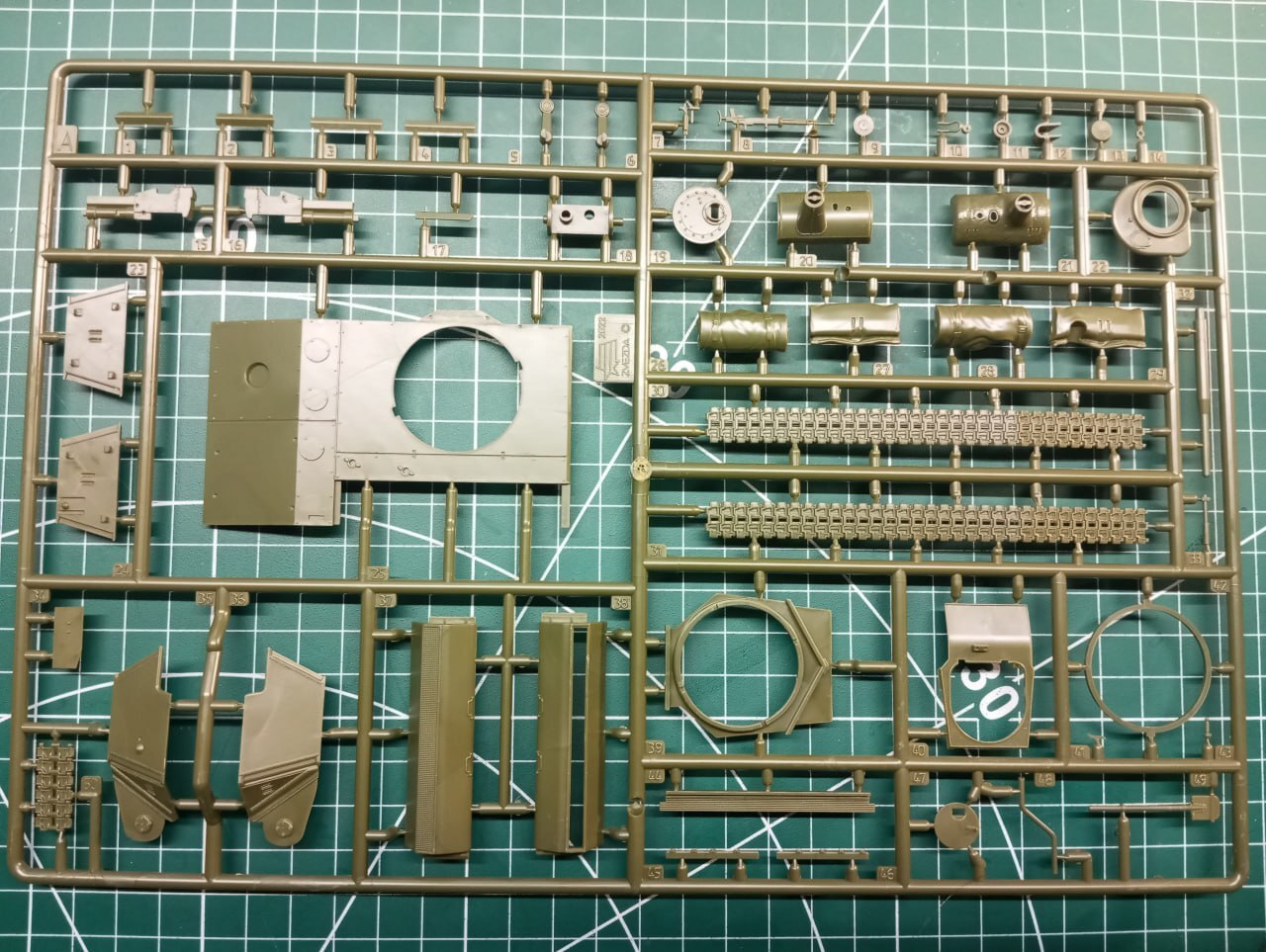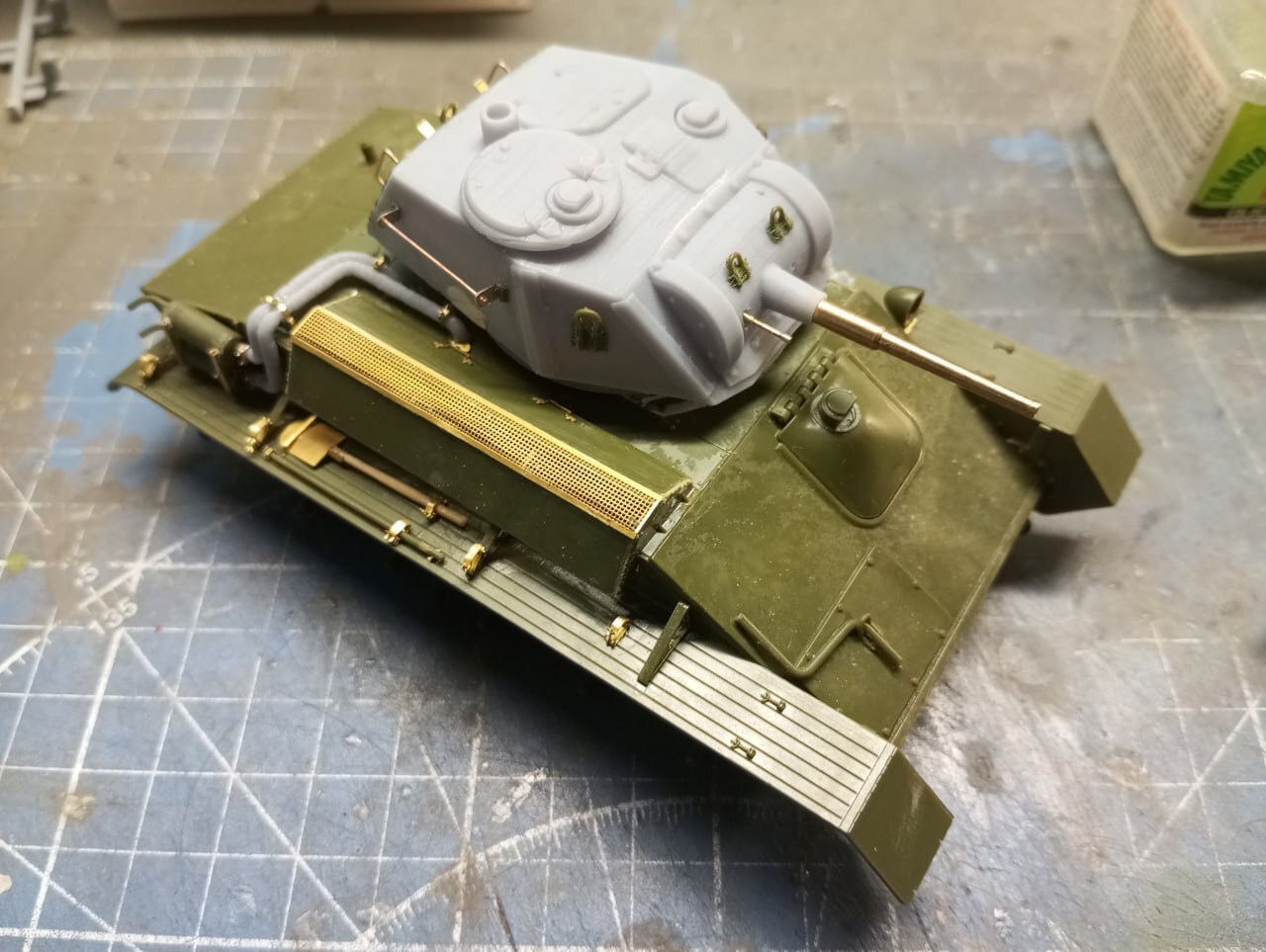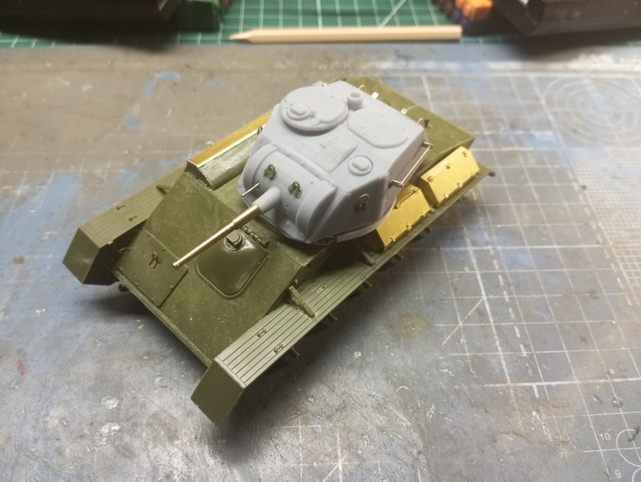 Вот здесь башенный погон уже практически завершен. Видно, что со стороны правого борта пластиковое кольцо срезано по линии шва, пролегающего по крыше корпуса.