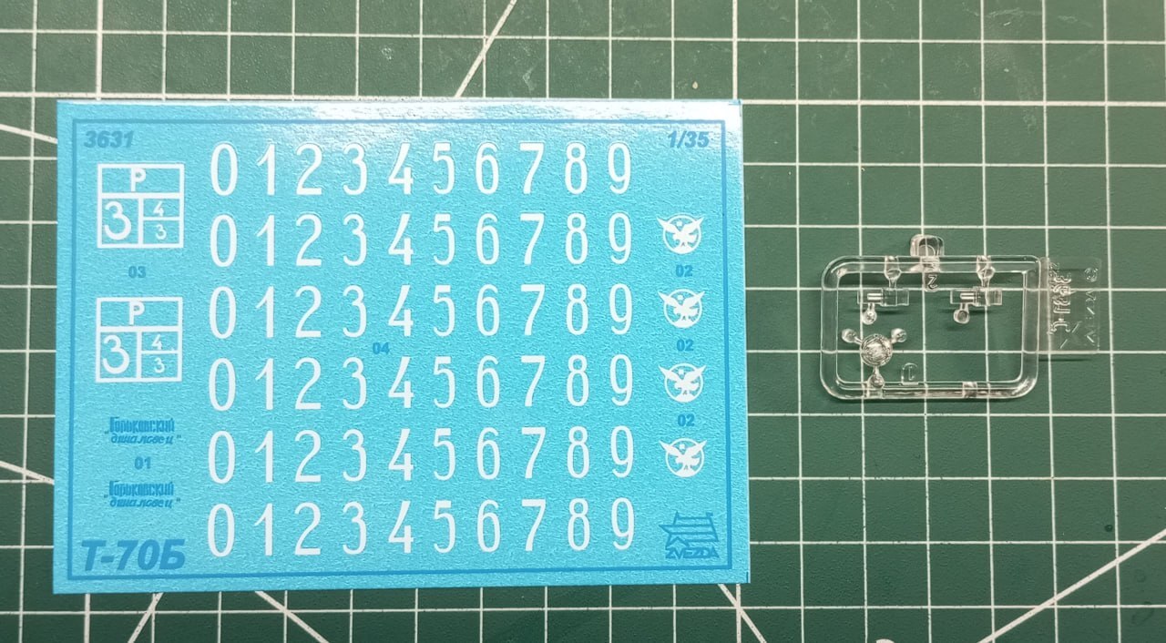 Вся история нанесения базового цвета уже была изложена в заметке про Т-70. Здесь же просто скажу, что Т-80 я решил сделать зеленым. Самым простым, зеленым, цвета 4БО. После нанесения базового слоя, все поверхности были обработаны масляными точками. Декали были использованы родные, причем с того же листочка, что и на Т-70. При этом там еще осталось цифр модели на четыре (и то, только потому что сложно начать бортовой номер с какой-нибудь девятки).