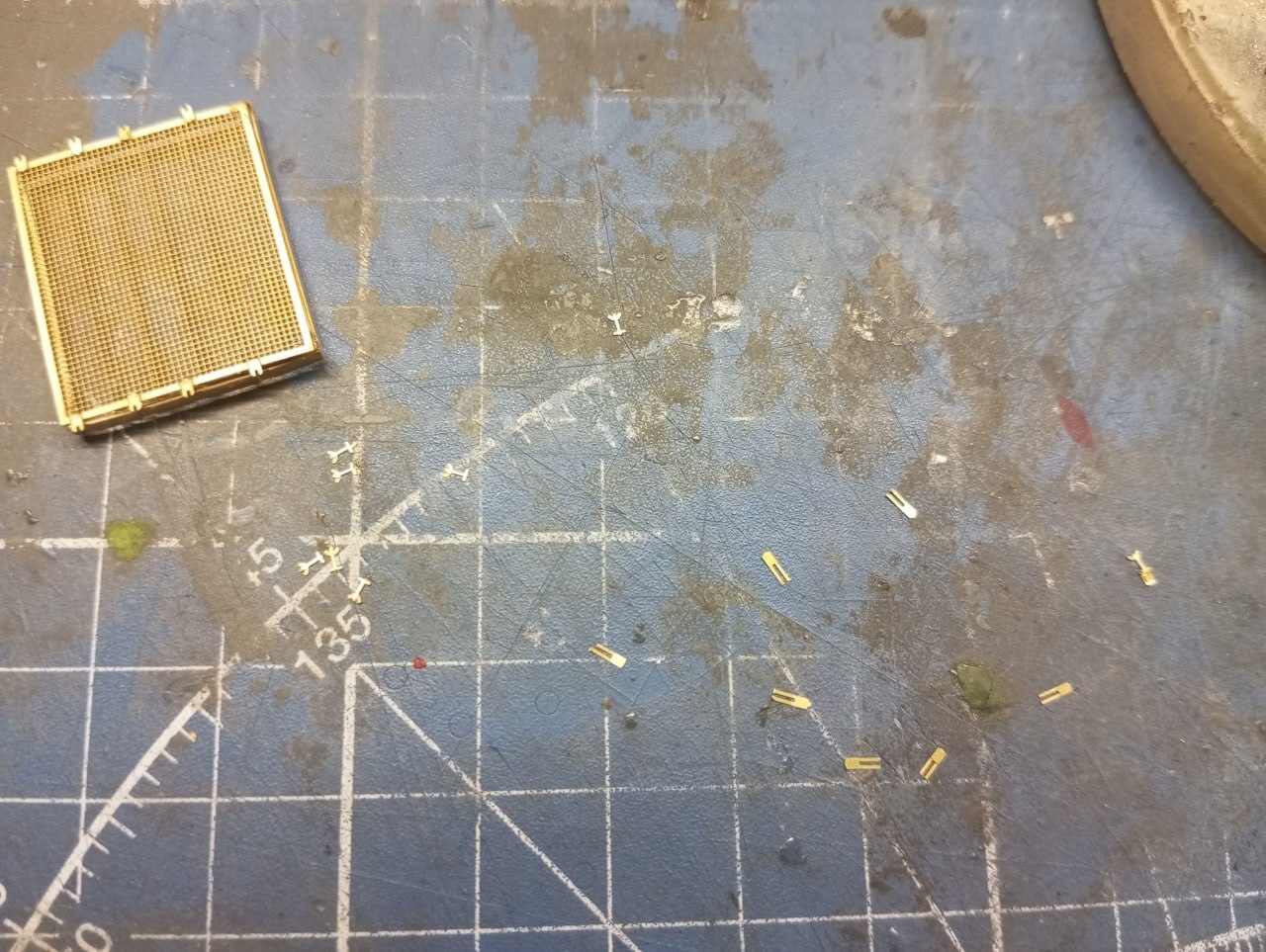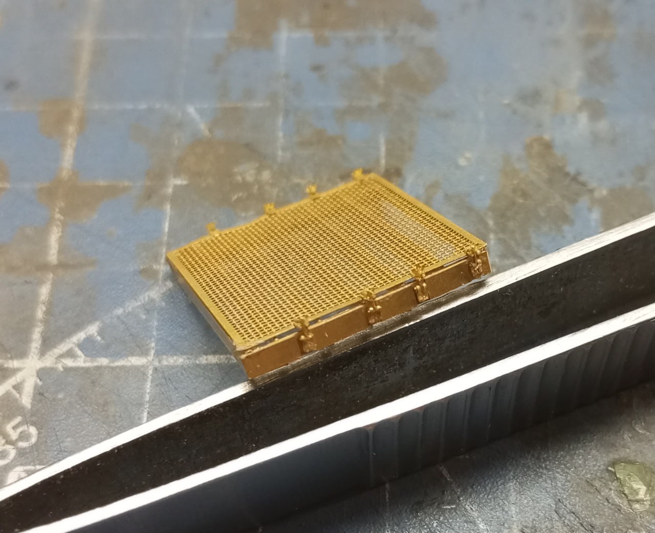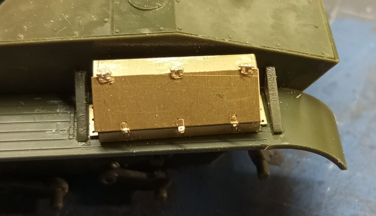 Одновременно с этим был обварен и башенный погон. Кроме сварного шва на него были добавлены болтики, а также стеночка по периметру "наплыва". Взамен утраченных, из пивжести и проволоки были сделаны поручни, которые распологаются на бортах башни.