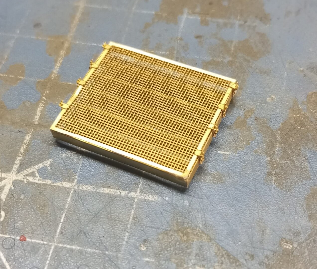 Здесь же на фото винды травленые хомуты на печатном выхлопном трубопроводе. Делать эти хомуты было довольно хлопотно, в первую очередь из-за того, что в состав каждого хомута входят две травленые "гаечки", диаметром где-то полмиллиметра. Эти гаечки надо суметь надеть на концы проволоки, изображающей хомут, при том, что налезать на проволоку эти гаечки обычно отказываются.