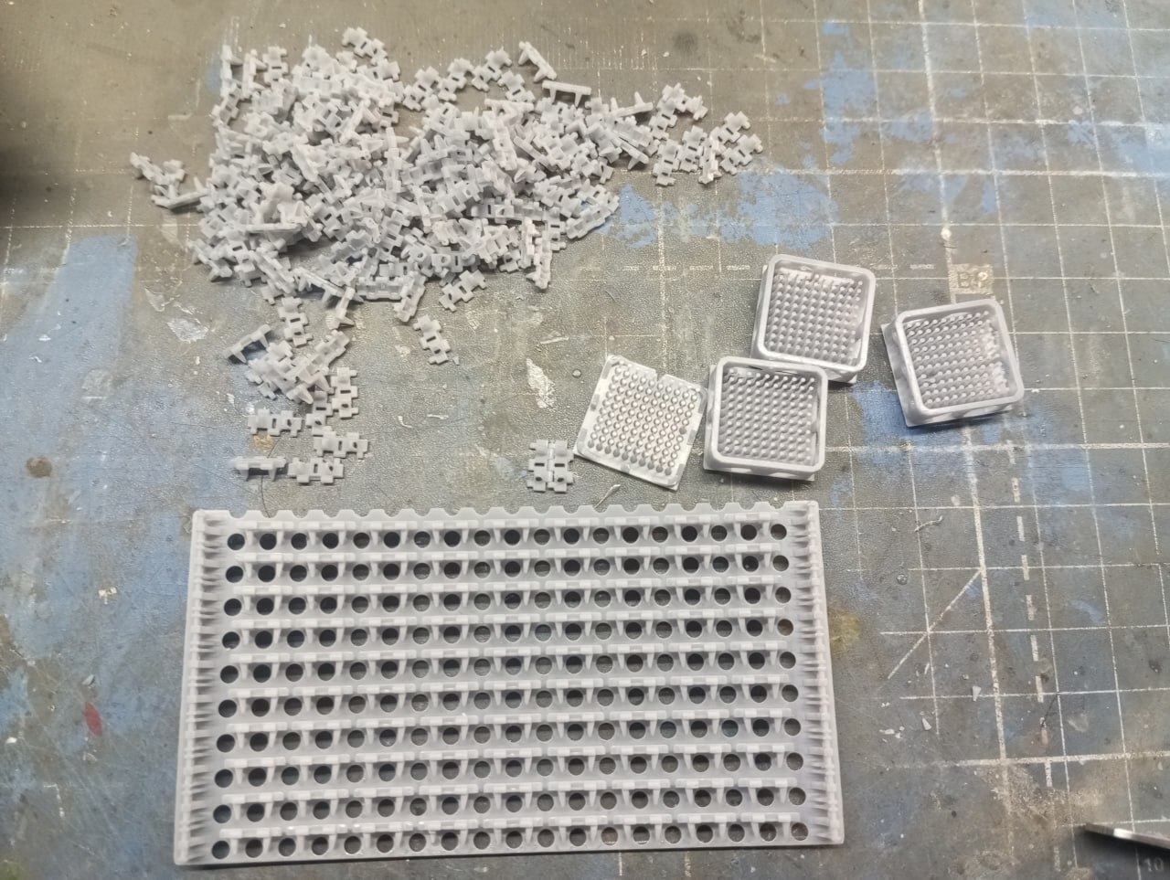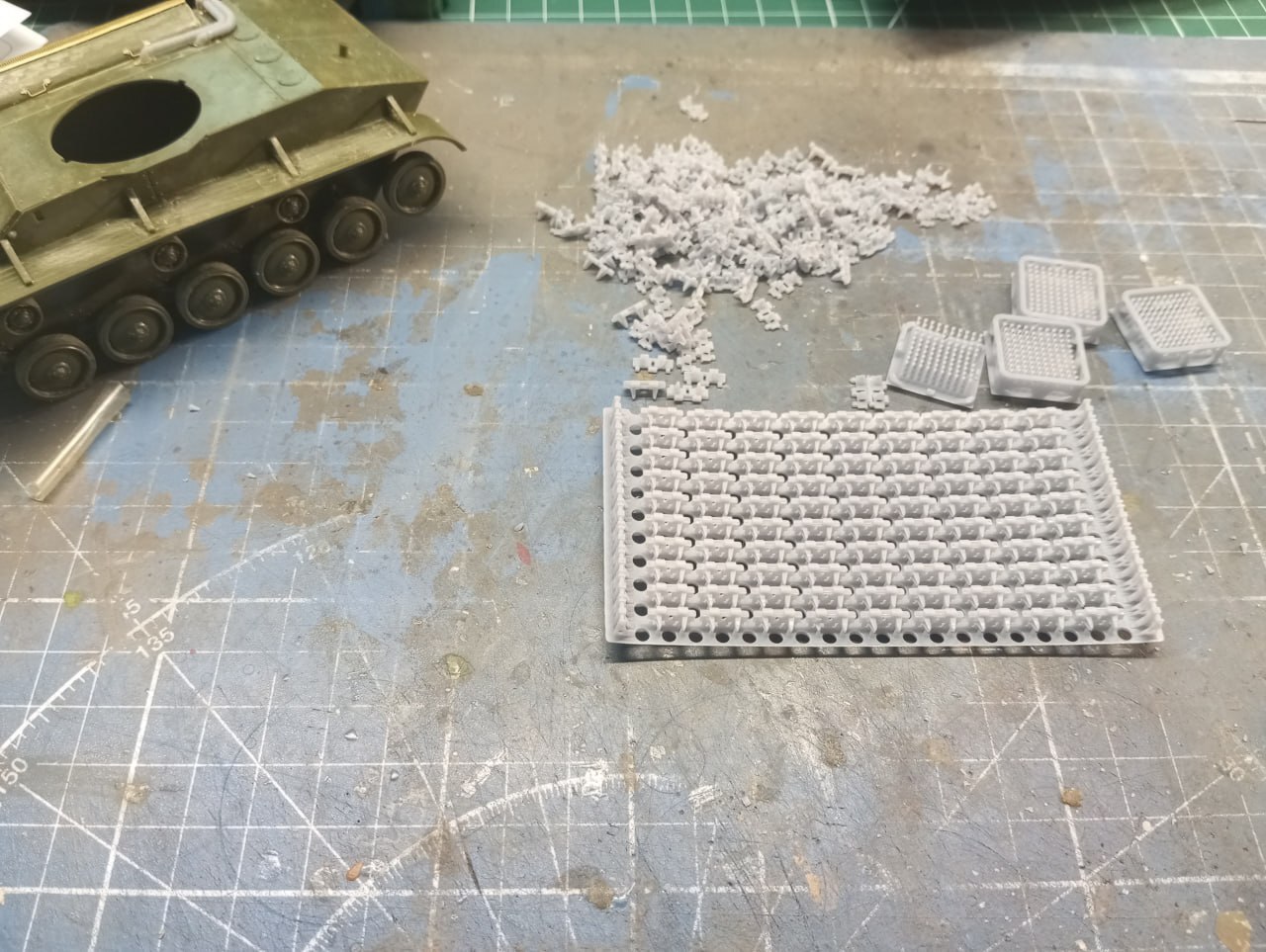 Выгрызенная из поддержек она выглядит вот так. Справедливости ради, скажу, что ствол пушки здесь был вполне неплохой. Правда, я все равно позже заменил его на точеный. Разочаровали приборы наблюдения - никакого намека на рамку, никакого намека хотя бы на углубление, которое можно было бы выделить краской. Просто оплывшая ровная поверхность. При этом, башня удачно расположена на саппортах, и, в отличие от башни Т-29, снялась с них без каких-либо затруднений.
