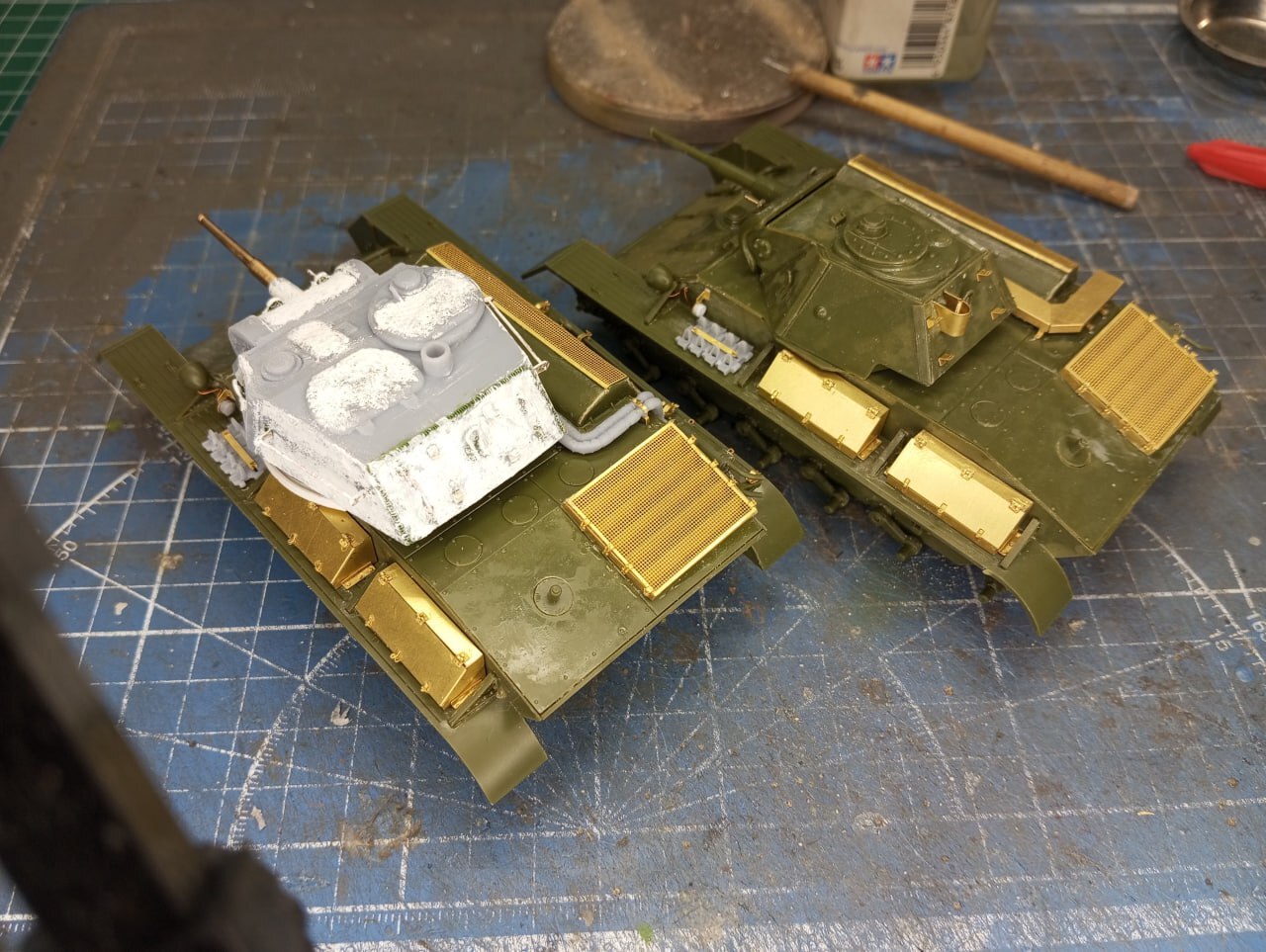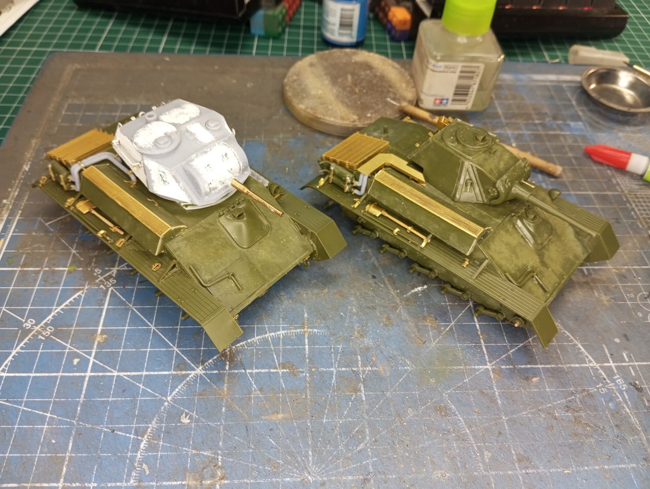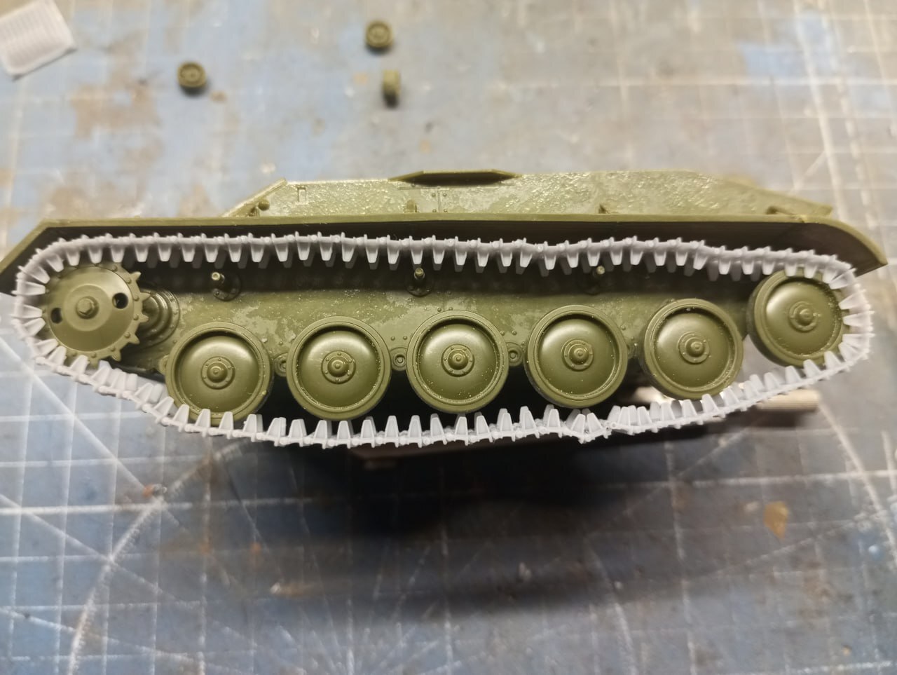 Как бы то ни было, по итогу конструкция стала приобретать более-менее достойный вид. Травление, шкурка и напильник сделали Т-80 вполне похожим на прототип.