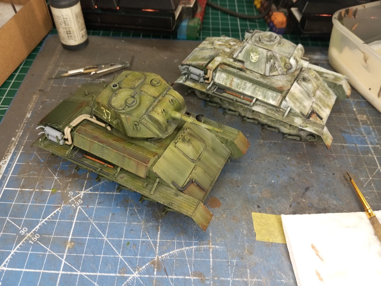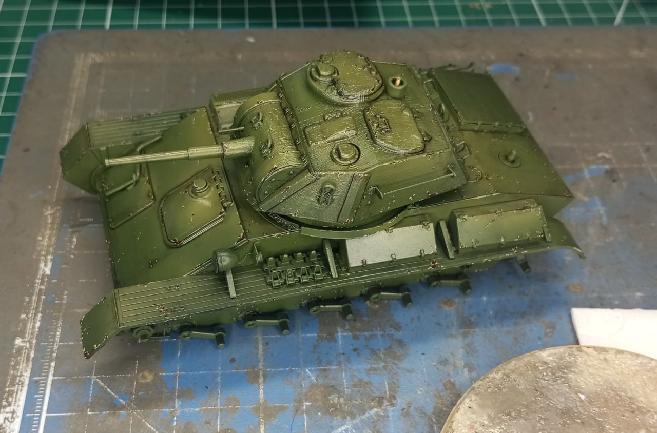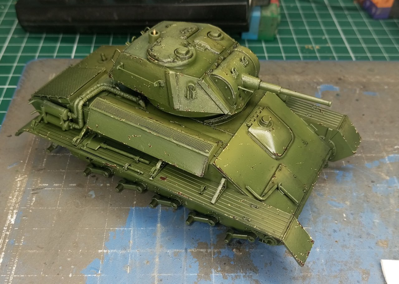 Везеринг был незатейливый — немного текстурной пасты на ходовую, чуток пигментов. У меня не было цели делать чумазый танк, поэтому я ограничился легкими эффектами, не превращающими модель в комок грязи.