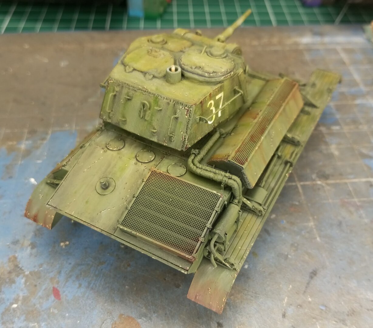 Итог — несмотря на то, что исходник башни был, мягко говоря, очень не очень, Т-80 получился довольно неплохим. Мне удалось спрятать корявость башни, где-то устранив ее, где-то — закрасив. По итогу, танчиком я доволен. Как видно, на заглавной фотографии — Виссарионыч доволен тоже. Даже жуткого вида провис на левой гусенице не портит ни мне, ни ему общего настроения от результата.