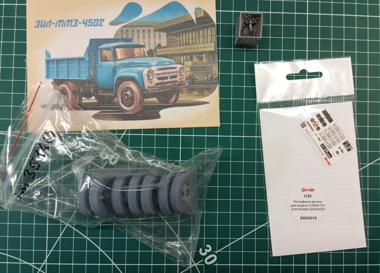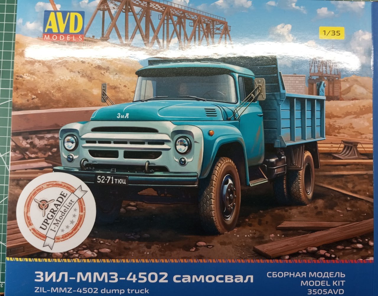 В этот раз в мои руки попал один из грузовичков на базе ЗиЛ-130 производства AVD, а именно — самосвал ММЗ-4502. У AVD есть еще куча модификаций этого ЗиЛка — и бортовая версия, и еще один самосвал, и даже тягач с полуприцепом. Но собирать я решил именно эту версию, потому что она у меня была на руках, и мне очень хотелось собрать что то гражданское и не зеленое.