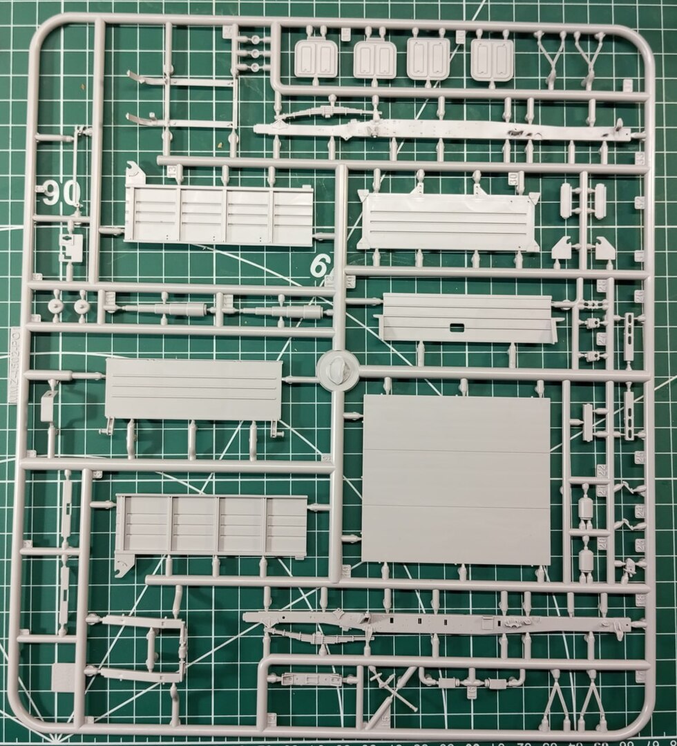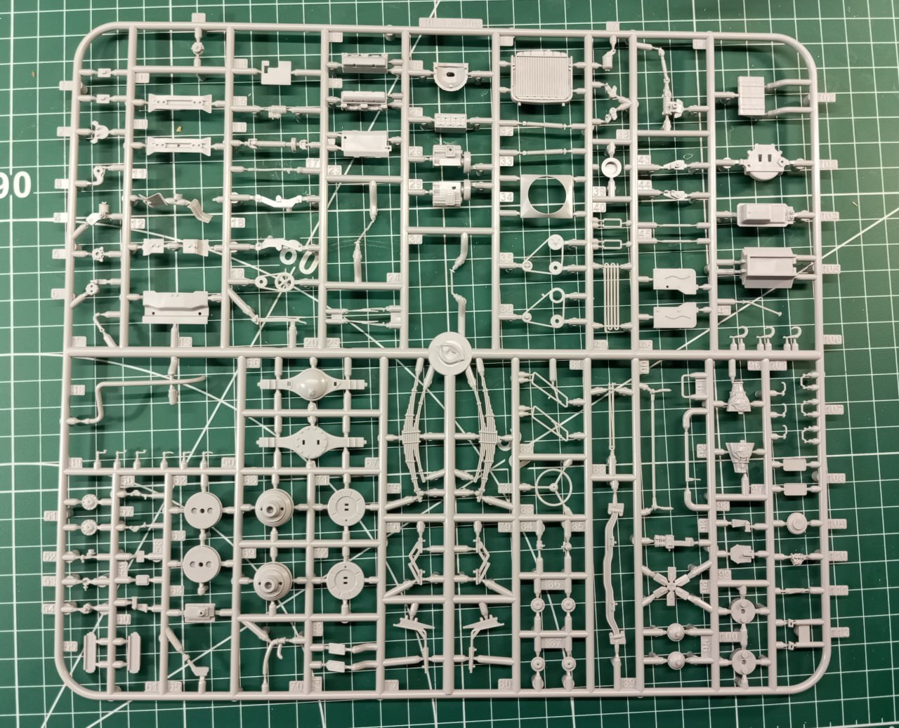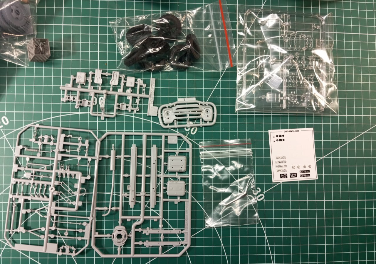 Начнем, по традиции, с того, что лежит в коробке. Кроме кучи литников, там также находится толстенная инструкция и небольшая сувенирная открыточка. Кроме этого у меня были 3D-печатные колеса, 3D-печатные зеркала и набор 3D-декалей от Emboss.