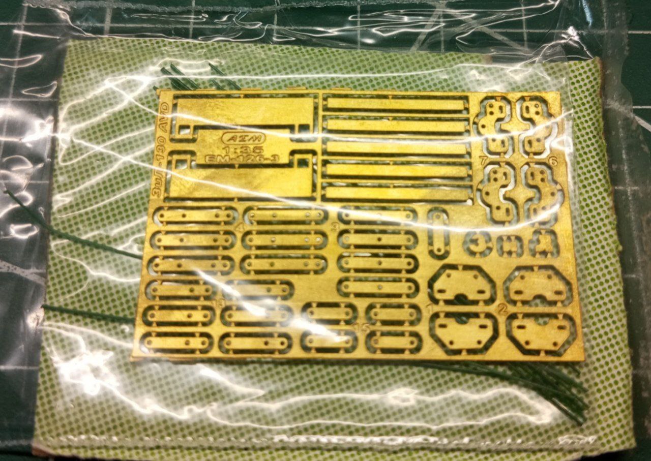 Дальше, были установлены на место двери, и грузовичок можно было уже красить, но мне захотелось сложностей. А именно — зря я что ли украшал двигатель? Модель предполагает возможность сделать ее с открытым капотом, но мне не нравилась мысль, что она все время будет с этим "раззявленным хлебалом". Так что я начал изучать вопрос и уж было собрался делать петли самостоятельно, как вдруг наткнулся в интернете на набор фототравления, как раз под эту модель. Выпускает его компания АЕМ.