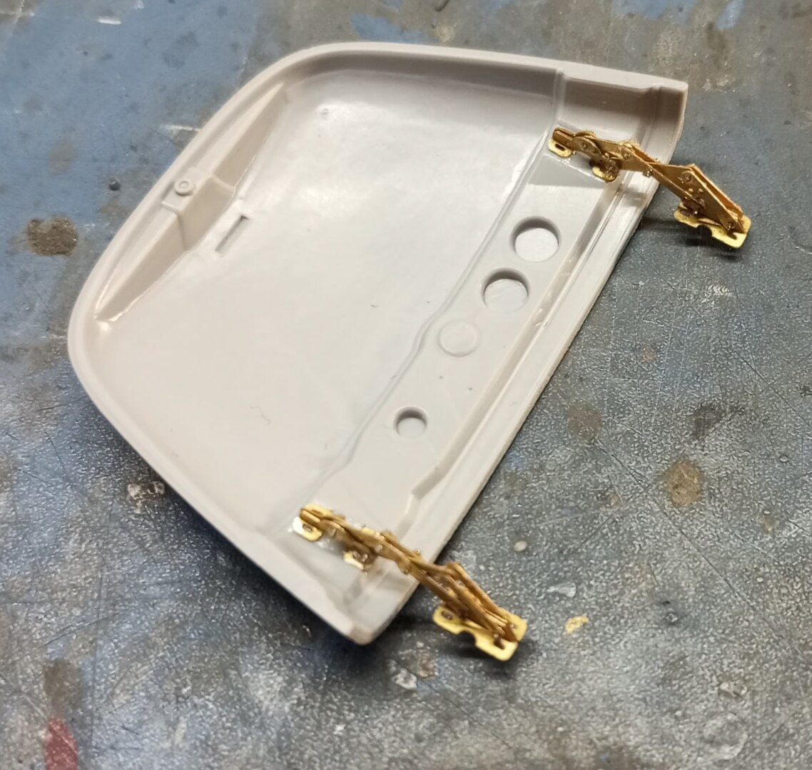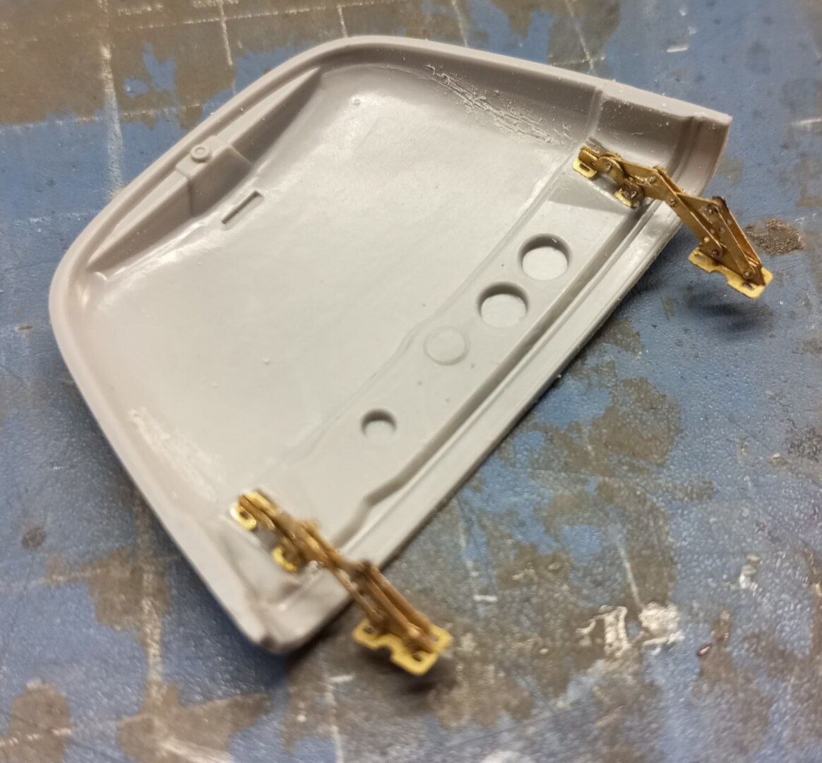 Я не могу назвать этот набор совсем уж копийным (и не могу сказать, как ведут себя другие части набора, которые я не использовал), но в принципе, свою работу он делает — позволяет собрать рабочую конструкцию петель. Хотя и переразмеренных — мне пришлось неизящно подпиливать деталь капота, чтобы петли встали плотно, и капот мог закрываться без совсем уж неприличных щелей.