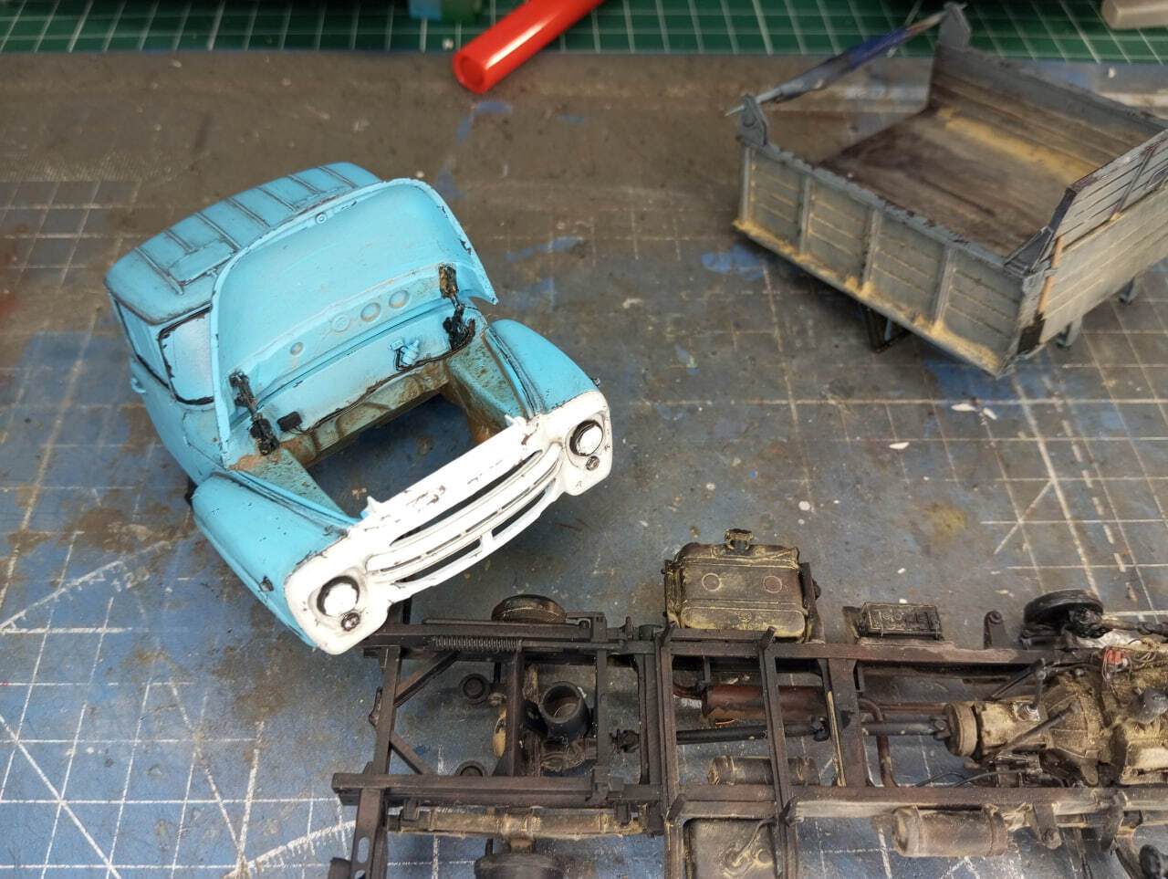 Довольно долгая стройка, хотя, если посмотреть назад, в ней не было ничего особо сложного. Просто так получилось, что сборка этого грузовичка-самосвала заняла у меня почти год. В мире моделизма такое бывает.