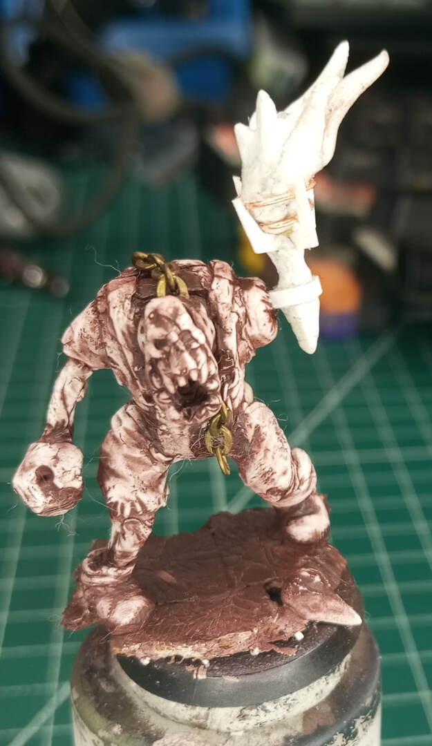 На фото ниже некро-орк в основном уже после проявочного слоя грунта, поэтому вид у него довольно жалкий. Особенно жалкий от налипшего с ватных палочек ворса. Прошу прощения, так вышло.