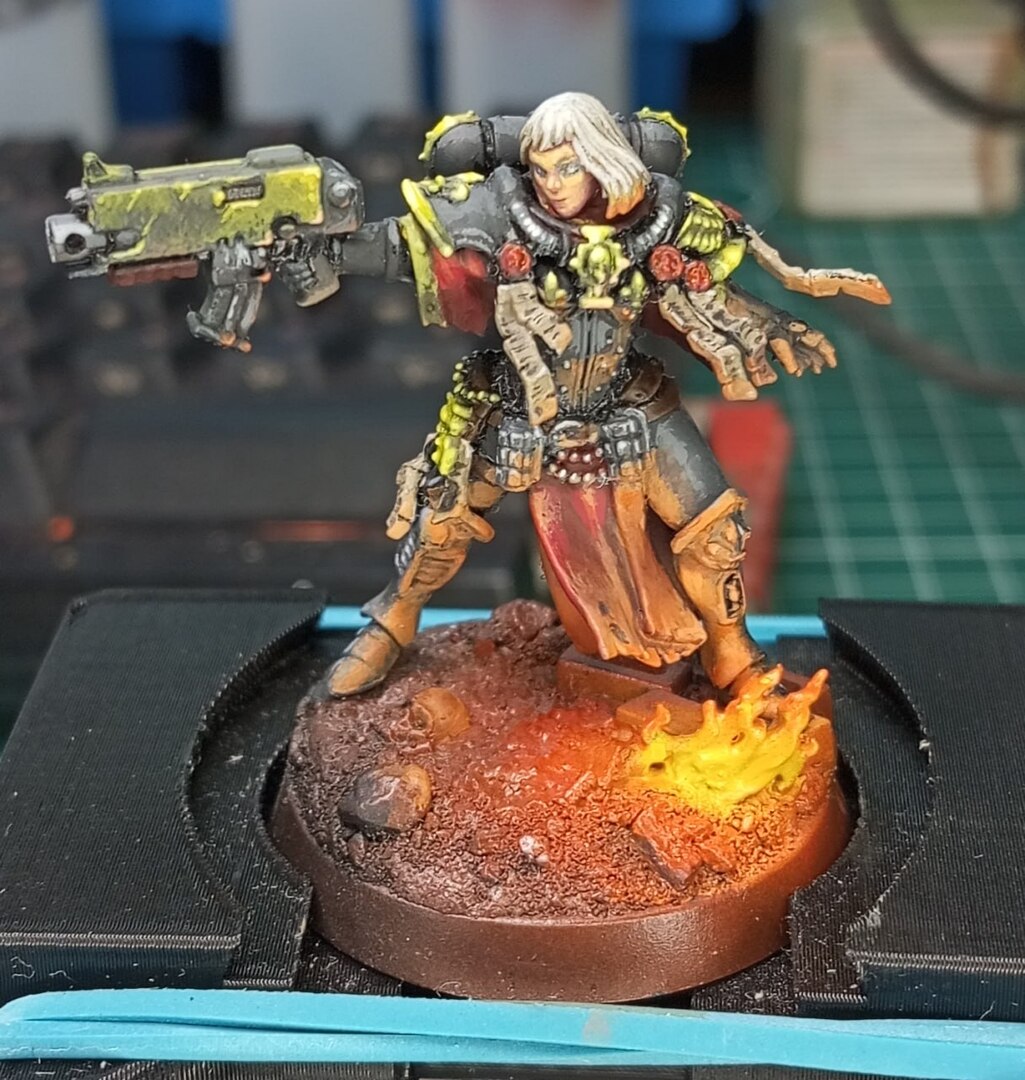 Тогда я осилил лишь имитацию огня на базе с помощью аэрографа. Получилось в целом неплохо, но желание изобразить OSL и на миниатюре грызло меня настолько же сильно, насколько я в тот момент понимал, что я OSL рисовать не умею. А рисовать его плохо я не хотел.